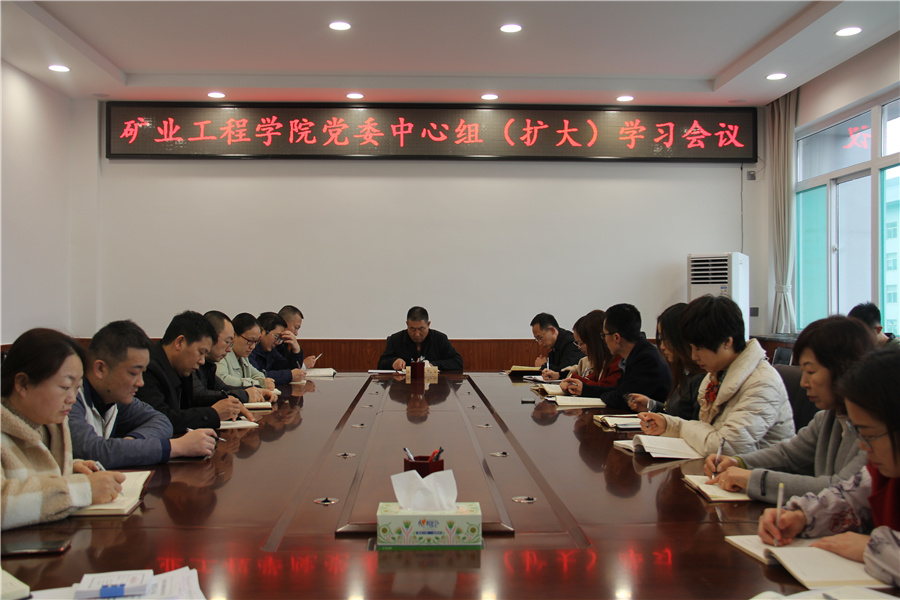 3月18日下午,矿业工程学院召开党委中心组(扩大)学习会议,集中学习习近平《论中国共产党历史》、“两会”精神,开展师德师风教育,进行选举工作安排部署。会议由院党委书记薛武杰主持。