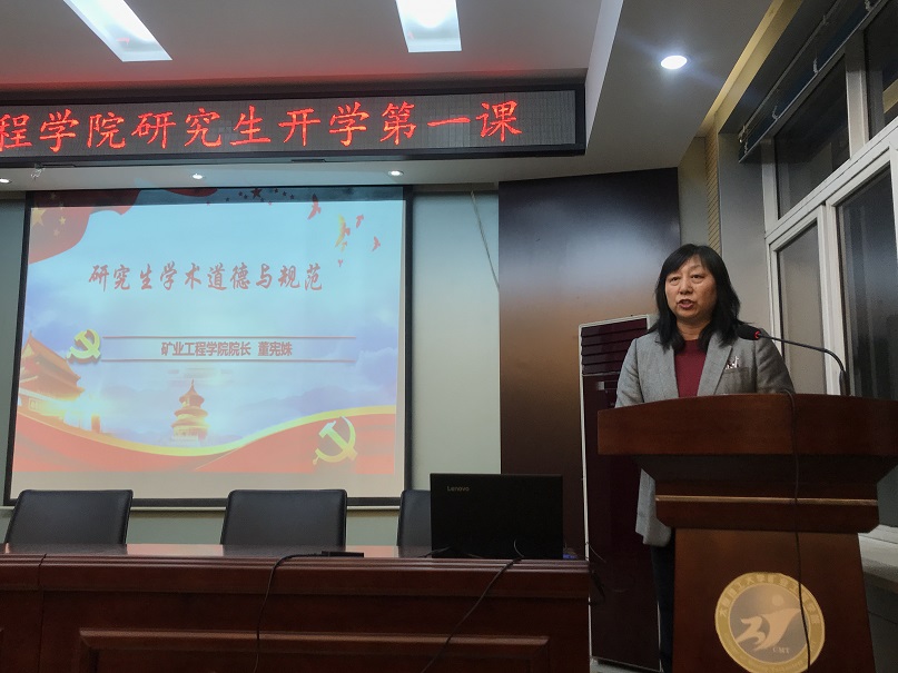 院长董宪姝为同学们讲授了《研究生学术道德与规范》。她带领同学们回顾了350vip浦京集团官网的历史,回顾了矿业工程学院的历史。董宪姝指出,研究生在学术过程中要有自己的思想,要有创新;在做论文的时候,要有整体性系统性。她强调,科学要道德化,规范化,不要做违背科学道德的事情,在科学道德的约束下才能走向好的结果好的未来。