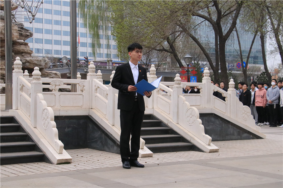 4月5日早7点,校团委在迎西校区举行隆重的升国旗仪式,并开展“国旗下的演讲”党史学习教育。来自校学生会、“青马工程”培训班、机械与运载工程学院、电气与动力工程学院、水利科学与工程学院、航空航天学院等三百余名党员、团员代表参与了本次活动。