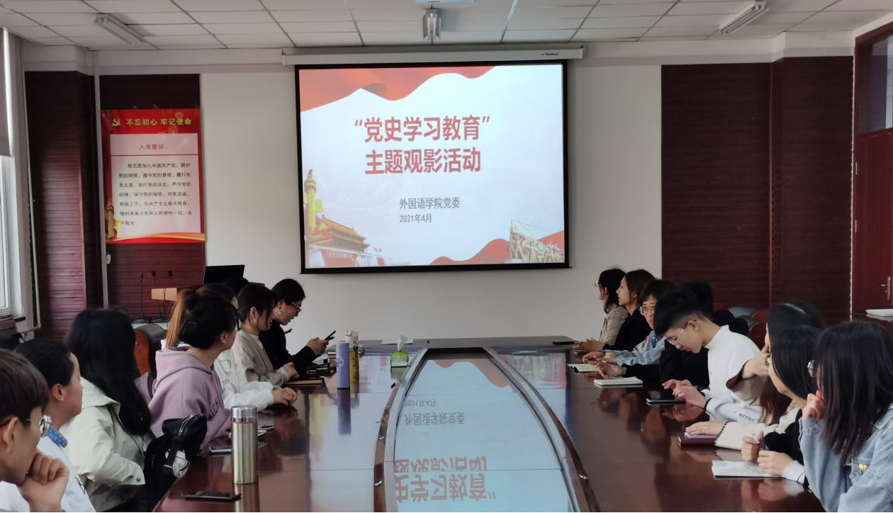 为推进党史学习教育深入开展,4月14日下午外国语学院党委组织开展红色主题电影《建党伟业》的观影活动。各党支部书记、部分党员和全体入党积极分子一起观看,共同回顾党成立的光辉历程。