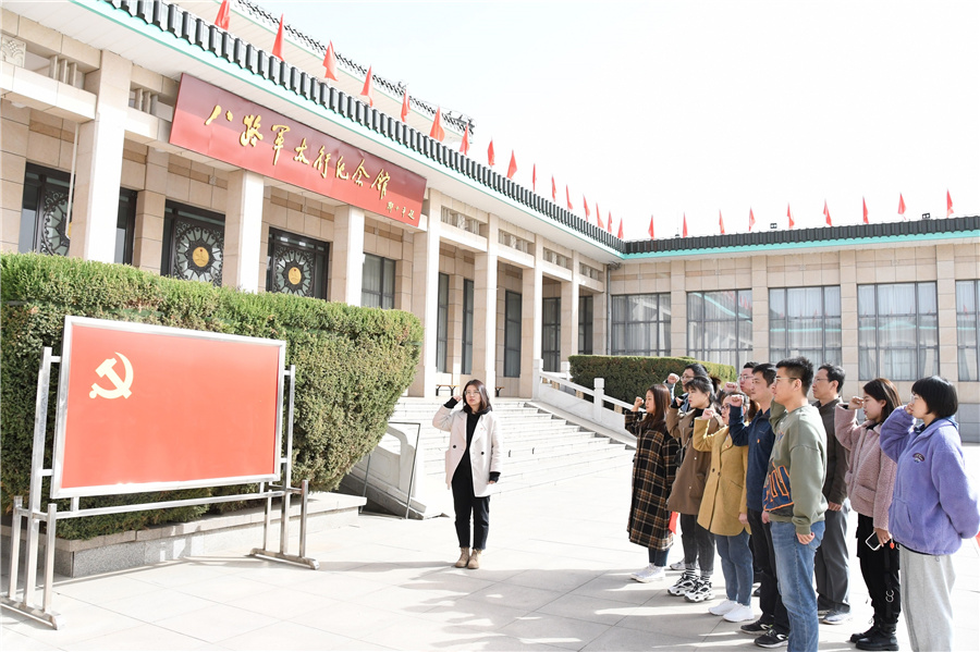 在武乡八路军纪念馆,全体学工干部现场接受党史学习教育,重温了抗战精神、八路军精神和太行精神。一幅幅生动的图片,一件件真实的器物,彷佛将时光穿越回了那个战火纷飞、保家卫国的战争年代,先烈们浴血奋战、以身许国的英雄形象又鲜活地呈现在大家面前,大家纷纷表示,要向先辈学习,以革命精神武装自己的头脑,不忘初心、牢记使命,以更加优异的工作业绩为学校“双一流”建设作出贡献,向建党100周年献礼。