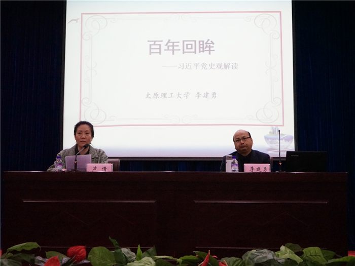 会上,李建勇教授以《百年回眸——习近平党史观解读》为题,从两个方面对习近平党史观进行了深刻解读。一是坚持以习近平的党史观为指导学好党史,讲解了什么是习近平的党史观、习近平党史观的特点及性质;二是学党史悟思想,开创太理发展的新局面,主要阐述了习近平总书记悟出的治国理政的智慧,包括坚持以人民为中心、坚持实事求是的思想方法和坚持革命理想高于天,最后讲述了习近平党史观对新时代的我们的启迪——必须牢固树立精神动力的意识。