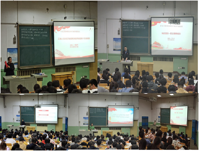 薛武杰以“正确认识改革开放前和改革开放后的两个历史时期”为主题,详细介绍了改革开放前与改革开放后的两个历史时期,针对如何正确认识改革开放前和后的两个历史时期这一困惑,分享了自己的学习体会,系统地阐释了“两个历史时期”血脉相连的关系。学院党委副书记巴大志以“知史爱党,坚定理想信念”为主题,从毛泽东思想到习近平新时代下的中国特色社会主义,介绍了党的指导思想的发展史,重点讲述了习近平新时代中国特色社会主义思想。列举了刘胡兰、王进喜等人的光辉事迹,引申到学生,鼓励同学们勇于自我革命,严格要求自己,时刻对自己进行党性教育。学工办主任刘宏伟、团委书记张丁香和党建专员石婷分别以“发展党员流程”、“学党史、强信念、跟党走”和“爱国、励志、做追梦者”为主题为同学们讲述了党课。