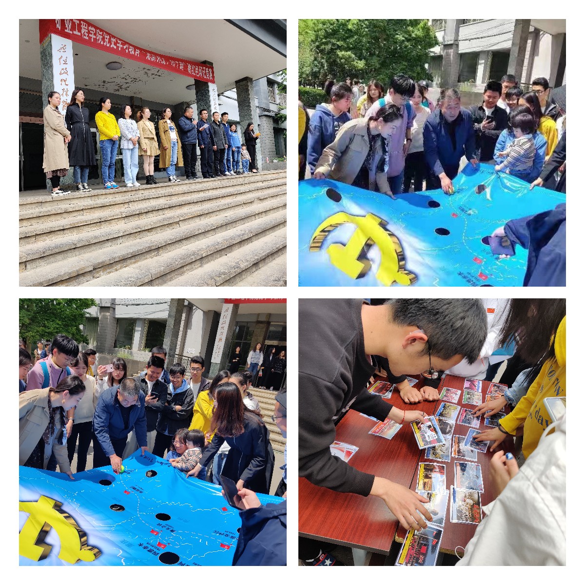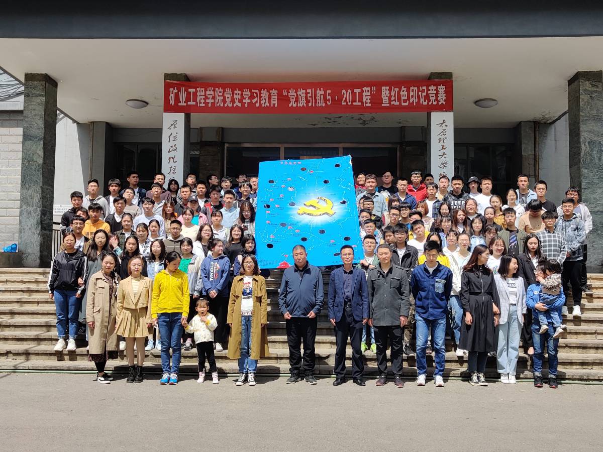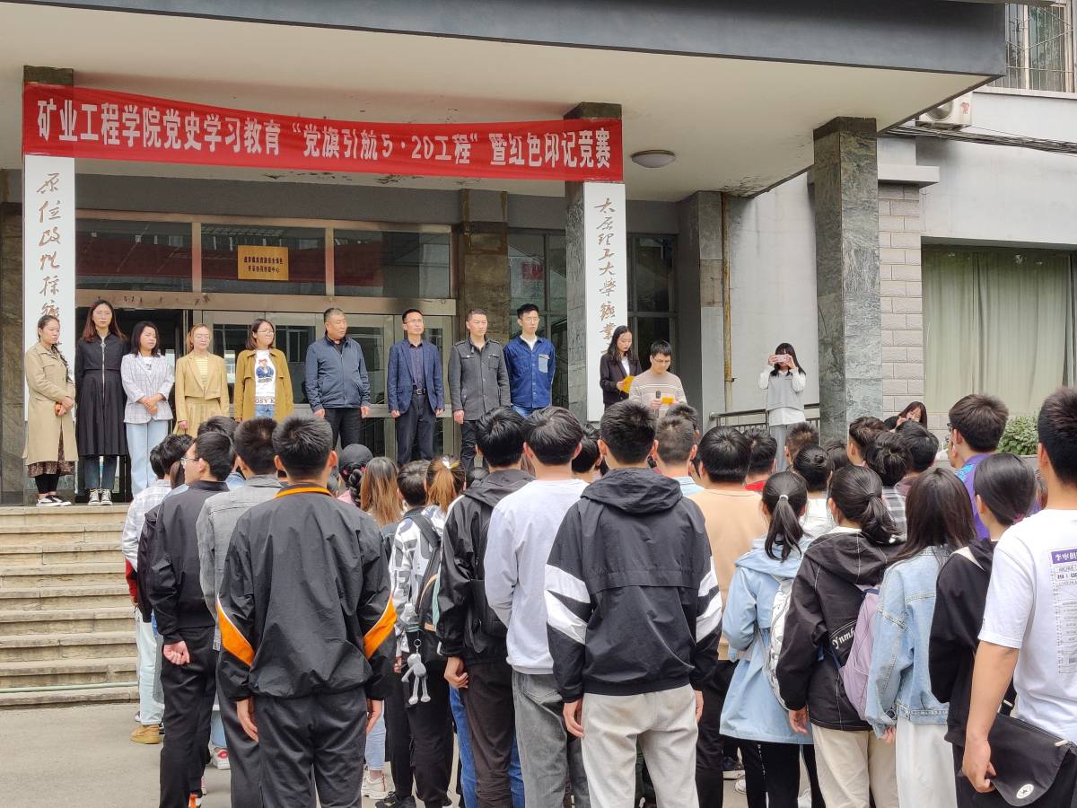 4月30日中午,矿业工程学院于虎峪校区致明楼下举办党史学习教育“党旗引航5·20工程”暨红色印记竞赛。由全体团学干部、学生党支部、学生组织成员组成的100名矿业工程学院“党旗引航5·20工程”党史学习教育团成员参加了本次活动。