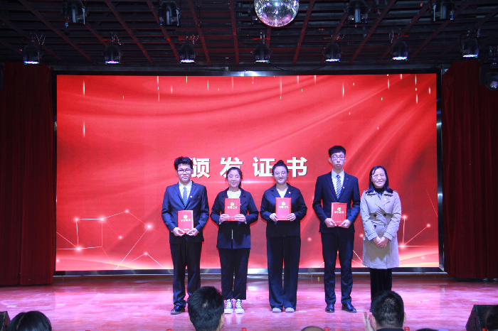 在奏唱慷慨激昂的国歌后,五四表彰会拉开了序幕。院长张建文宣读了表彰决定,嘉宾分别为受到表彰的4个活力团支部和46名优秀团干部、优秀团员、寒假社会实践优秀个人颁发了荣誉证书。获奖学生代表杨嘉睿发言,她结合亲身经历,总结过去,展望未来,并对学院的关怀和培养表达了最诚挚的感谢。院党委书记游志勇在表彰会上进行总结讲话,他回顾了中国共产党团结带领全国各族人民不忘初心、牢记使命,艰苦奋斗的百年光辉历程,带领大家重温习近平总书记在清华大学考察时的讲话,希望全院青年肩负历史使命,担当复兴大任,让青春在不懈奋斗中绽放绚丽之花。