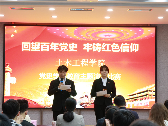 为进一步夯实学院党史学习教育成果,引领学生听党话、感党恩、跟党走,以实际行动迎接建党一百周年,土木工程学院举办了“回望百年党史,牢铸红色信仰”党史学习教育主题演讲比赛。本次演讲比赛分为预赛和决赛两个环节,紧密围绕学校“百组千讲5·20教育计划”,引导学生放声演说、回顾党史,生动讲述建党百年的峥嵘历程和光辉成就。