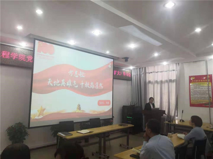 会上,学生党支部书记杨倩同志就方志敏的《可爱的中国》及方志敏精神作了发言。