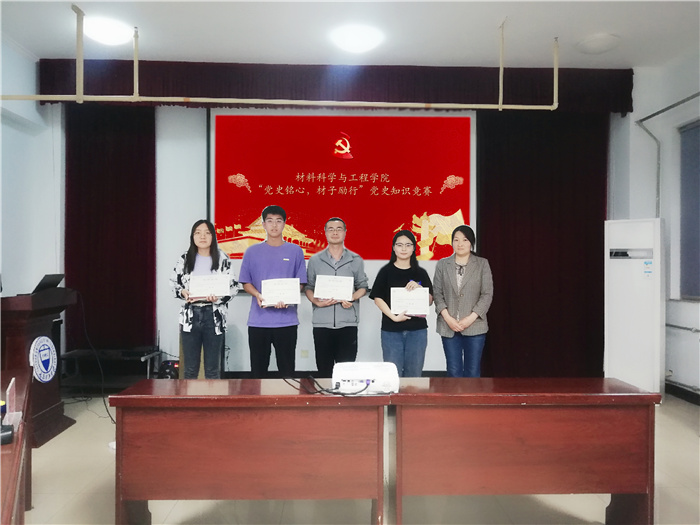 为迎接中国共产党百年华诞,回顾党的光辉历程,营造“学党史、知党情、跟党走”的浓厚氛围,进一步丰富党史学习教育内容,以实际行动践行初心使命,材料科学与工程学院各学生团支部开展了为期两周的党史集中学习活动,并于5月17日晚在材料学院813会议室举办“党史铭心,材子励行”党史知识竞赛决赛。材料科学与工程学院党委副书记郑芳、团委负责人高超楠、阳光之家指导老师许通陆、辅导员陈永琳出席了本次活动。