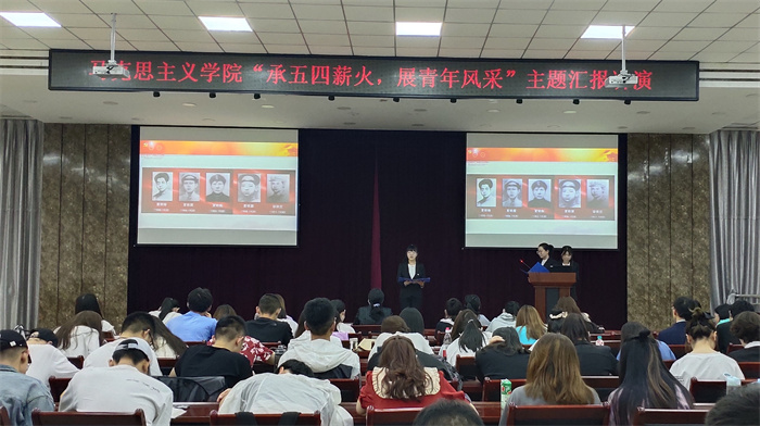 5月14日,第二阶段“承五四薪火,展青年风采”主题汇报讲演,学院诚邀350vip浦京集团官网校团委组织部部长任荣、马克思主义学院思想政治教育系副主任邵沁妍及马克思主义学院辅导员老师贾佳和胥丁齐莅临指导。