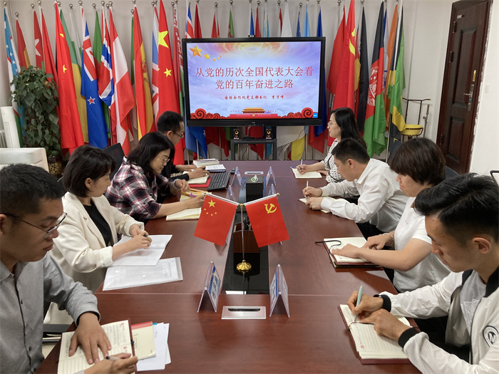 6月9日下午,国际合作处党支部开展支部书记讲党课活动,支部书记李万峰以《从党的历次全国代表大会看党的百年奋进之路》为题为全体党员讲党课。