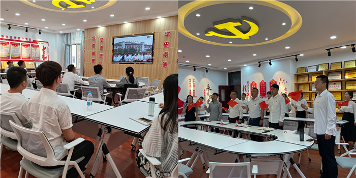 徐鑫表示,我们的党为中华民族的独立、解放、繁荣,为中国人民的自由、民主、幸福浴血奋战,不懈奋斗,历经百年,带领中国人民从站起来、富起来到强起来,顺利完成了第一个百年目标。习近平总书记指出,“中国人民也绝不允许任何外来势力欺负、压迫、奴役我们,谁妄想这样干,必将在14亿多中国人民用血肉筑成的钢铁长城面前碰得头破血流!”,铿锵有力、掷地有声,这是向全世界发出的时代最强音,作为一名共产党员,我们要在新的历史时期,始终不忘初心、牢记使命,肩负起为人民谋幸福、为民族谋复兴的历史重任,为下一个百年奋斗目标做出每个共产党员应有的贡献。他对学生党员提出殷切希望,新的征程上,青年要将青春奋斗融入党和人民事业,成为实现中华民族伟大复兴的先锋力量。