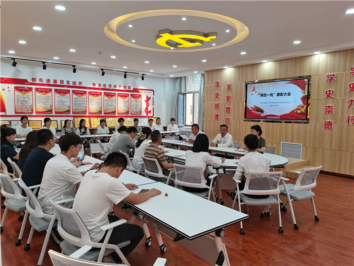 7月1日,环境科学与工程学院组织党员代表集体观看庆祝中国共产党成立100周年大会,并召开“两优一先”表彰座谈会,院党委书记徐鑫、副院长马旭莉和各支部书记、党员代表参加会议,会议由党委副书记钟明涛主持。