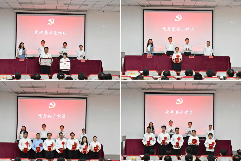 大会伊始,全体起立,奏唱国歌。李昱霞宣读“两优一先”表彰决定。院领导为先进基层党组织代表,优秀党务工作者,优秀共产党员等受表彰的先进集体和优秀个人颁奖并合影留念。号召全院师生以他们为榜样,务实进取,奋发图强,为学院发展做出新贡献。随后,五星级党组织代表、生医本科党支部书记杨雪芬分享了评选过程中的体会和心得,她指出,这份荣誉是集体的智慧和力量的结晶,对领导的支持、鼓励和师生的帮助以及付出努力的支部成员表达了诚挚的谢意。优秀党员教师代表武晓刚发言时指出:必须要立足本职岗位、善于学习、勇于创新才能发挥先锋模范作用。优秀党员学生代表吕营发言说:要听党的话,跟党走,全心全意为同学们服务。