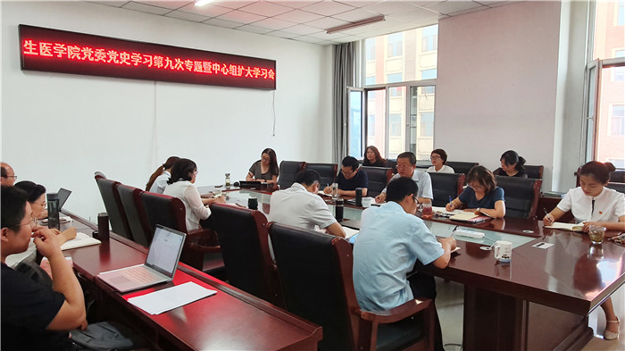 7月6日上午,生物医学工程学院党委在院408会议室召开党史学习教育暨中心组(扩大)学习会。院党委书记韩志军、院长陈维毅、副书记李昱霞、副院长安美文、三办一委负责人、工会主席,两系、两中心、研究所负责人,各党支部书记参加了专题学习会。韩志军主持会议。
