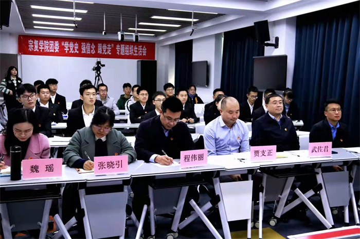 11月19日,宗复学院试验2104团支部专题组织生活会在求实学院221智慧教室召开。校团委副书记贾支正、宗复学院副院长程伟丽、求实学院党总支副书记武佐君、求实学院团委副书记李奇伟、求实学院学工办副主任张晓引、宗复学院凌霄书院主任魏瑶、凌霄书院分团委书记王紫萱应邀参加组织生活会并做点评指导。