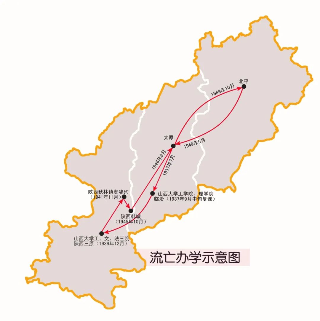 1937年 8月,日军飞机不断轰炸太原,阎锡山接受了我党抗日民族统一战线的主张“守土抗战”,山西大学工学院、理学院奉命迁往临汾;9月中旬开课时,因局势紧张,师生到校不足一半;11月8日,太原失守,山西省政府下令各大专院校立即停课解散。学校在战火中艰难生存,开始了辗转数地办学的岁月