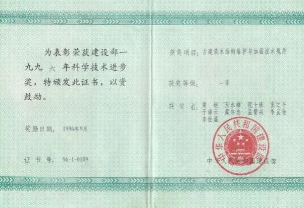 1996年获建设部科技进步一等奖
