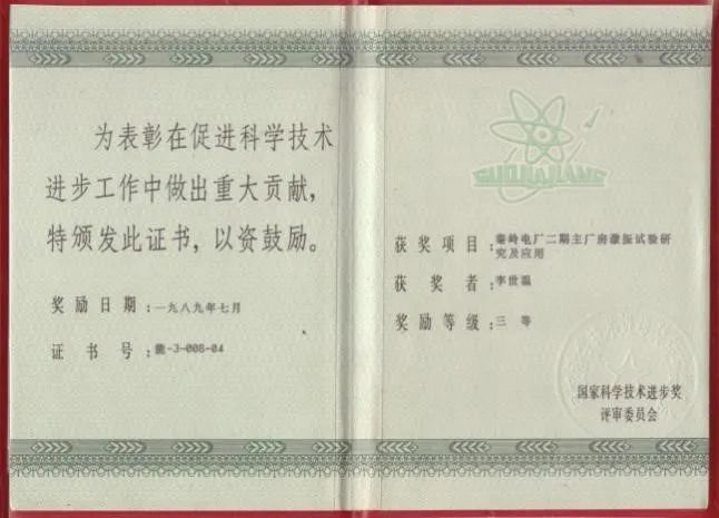 1989年获国家科技进步三等奖