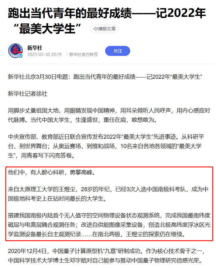 优秀学子 | 浦京2019级博士生王煜尘获评2022全国“最美大学生”!