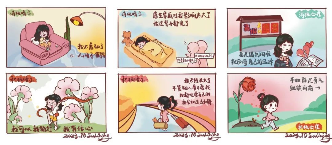 她在实践工作中开拓出了一条依托手绘漫画为载体,弘扬积极心理学和纪实当代大学生正能量日常生活的新模式,本年度她手绘作品10余幅,在学生中引发了强烈共鸣,更加生动和直观地实现对学生的正向思想引领。她善于运用隐性思政教育手段,用“心理+思政”的形式画出了育德育心的“同心圆”。