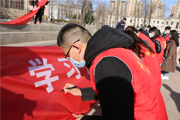 在活动仪式上,后勤保障处物业服务中心迎西校区管理部部长孙晋生对本次活动的形式、内容进行了简要介绍,建筑学院研究生党支部书记张涛作动员讲话,建筑学院研究生党支部方惠子作为公益志愿者代表进行表态发言。志愿者们在条幅上认真地写下了自己的名字,表达了自己学习雷锋精神的庄严承诺。