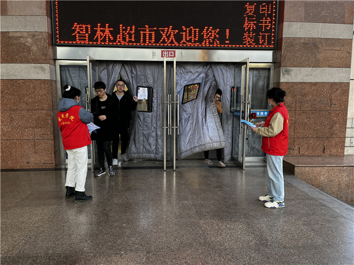 晚饭时间,建筑学院组织研究生党员、入党积极分子组成的第二批志愿者来到了清泽智林广场,志愿者向来往的同学发放传单,讲解疫情防控和防诈骗小知识,进行防疫宣传和防诈骗宣传,用自己的一点力量一点行动践行雷锋精神。
