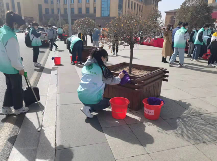 轻纺工程学院“轻韵”志愿者服务队开展“学雷锋”美化校园志愿服务