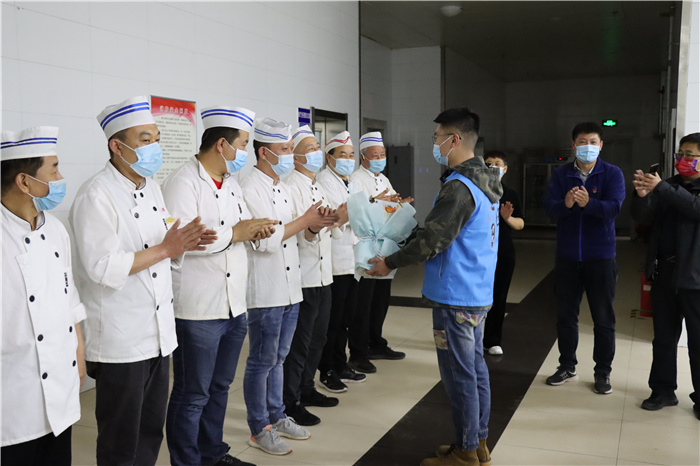 “民以食为天”,食品质量安全是他们不变的追求,特色菜品美味鲜香。每一份交到师生手中的餐食,都凝结着他们的汗水。疫情侵袭,物资运输受阻,他们挺身而出,为饮食保驾护航。接到同学们的鲜花,他们的脸上满满笑意。