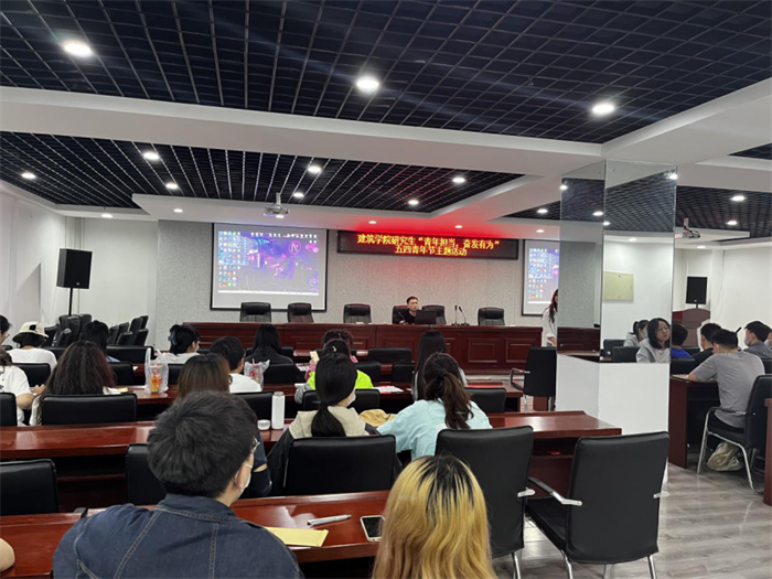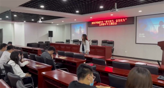 值此五四青年节,暨中国共产主义青年团成立100周年之际,为弘扬五四精神,喜迎党的二十大,建筑学院于5月4日在博学馆A座三层会议室组织研究生举办“青年担当,奋发有为”五四青年节主题活动,激励青年赓续奋进。本次活动分为重温历史和铭记初心两个部分进行。