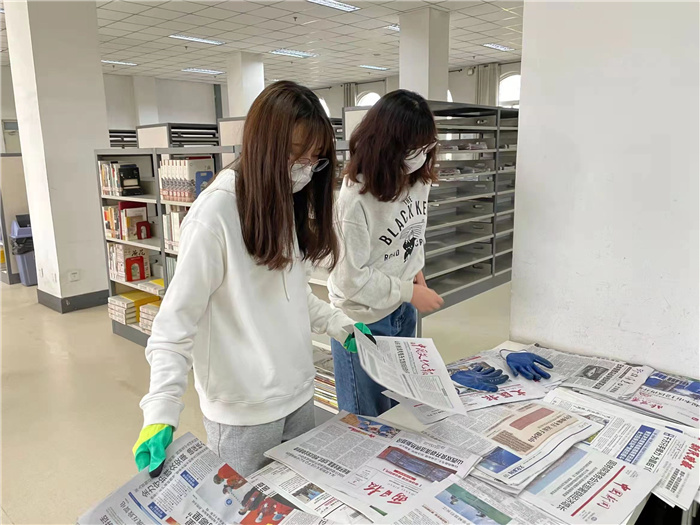 活动中,大家分工明确,根据图书馆的工作实际,积极按照老师要求开展志愿服务。女同学们在三楼负责将每一期报纸放进指定的报架中,男同学们分别在不同楼层,负责将过期的期刊整理好,然后在期刊架的对应位置换上了新的期刊,还对书架上的书籍进行整理和重新排序。志愿服务活动得到了图书馆老师们的一致认可和表扬。