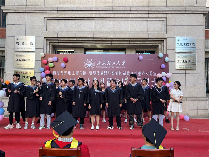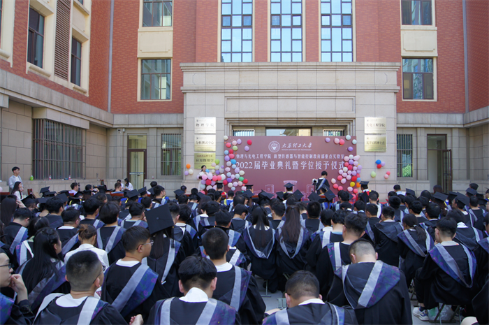 6月1日下午,光电工程学院2022届毕业生毕业典礼于明向校区物电楼东门小广场举行。学院党委书记戴震、院长郝玉英、副院长乔铁柱、新型传感器与智能控制教育部重点实验室主任杨毅彪、副主任靳宝全、校学科建设办公室副主任张明江、光学工程系系主任杨玲珍、物理学系系主任费宏明,2022届毕业生授课老师和辅导员们,2022届全体本科毕业生、硕士毕业生一同参加了本次典礼。