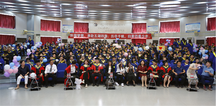 仪式尾声,周伟作了总结发言。他祝福同学们,不惧风雨、破浪前行,驶向更加灿烂的未来和远方。毕业典礼在在场全体师生校歌合唱中落下帷幕。