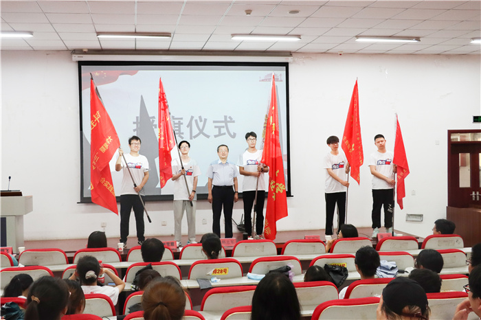 仪式上,韩志军为各支实践队伍授旗,并代表院党政领导向即将参加社会实践的老师们和同学们致以亲切的问候和美好的祝愿。希望每位队员紧紧围绕实践主题开展实践活动,深入企业、农村、乡镇,开展各式各样的活动,不畏辛苦,勇于担当,在实践中为社会注入青年力量。