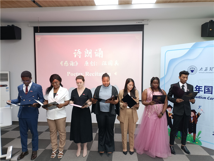 随后,毕业典礼在雄壮的《中华人民共和国国歌》中开帷幕。学生处处长、国际教育交流学院党总支书记赵国俊宣读《关于表彰2022届优秀国际毕业生的决定》,国际合作处处长张永忠宣读《350vip浦京集团官网国际教育交流学院校友分会关于聘任校友理事的决定》,肖连团等与会领导为相关国际学生颁发证书、聘书。