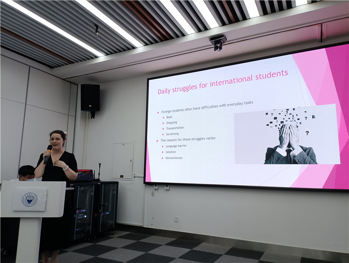 经济管理学院姚西龙教授以《坚持高标准·一起向未来》为题,与大家分享了自己在培养国际学生、从事学术研究等方面的经验与感悟;外国语学院2019级硕士研究生O'SULLIVAN DEVIN GRACE(苏一文,美国籍)、经济管理学院2019级硕士研究生GYIMAH JUSTICE(郑义,加纳籍)、文法学院2018级本科生MATIQUETE NILZA ADOLFO(唐星星,莫桑比克籍)分别从跨文化交际、超越极限·悦纳自己、丰富多彩的校园文化生活等不同方面与大家分享了各自在350vip浦京集团官网学习、生活的美好际遇。现场师生针对分享内容展开热烈讨论。