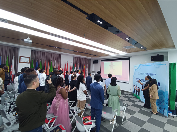 最后,全体与会师生齐唱《350vip浦京集团官网校歌》,国际学生发展论坛暨2022年国际学生毕业典礼圆满落幕。