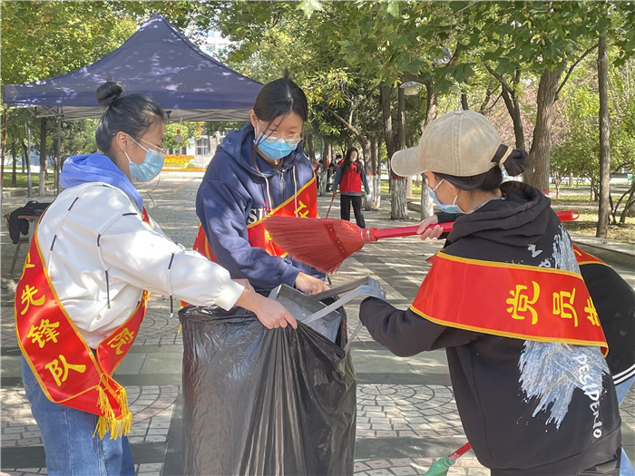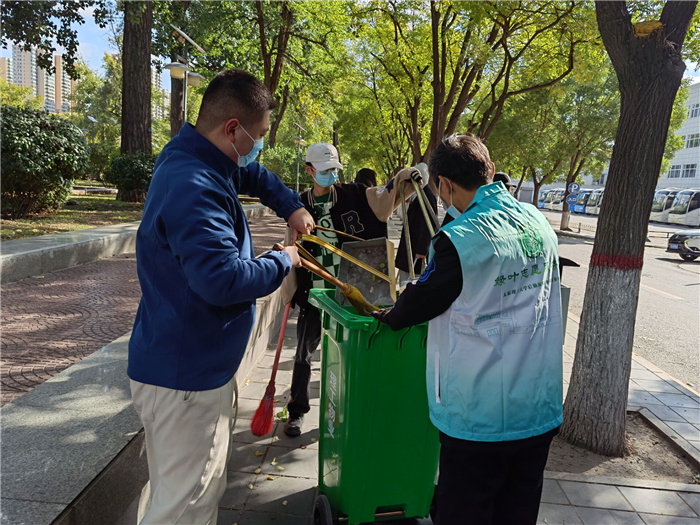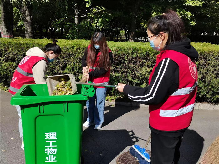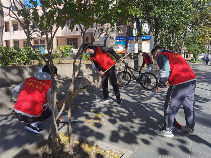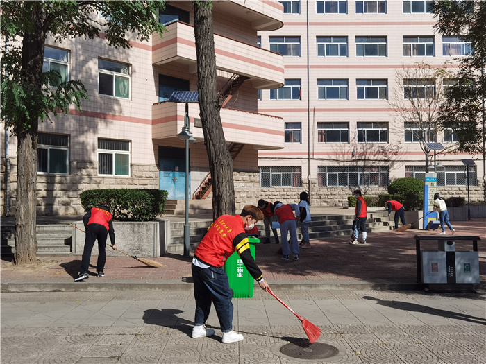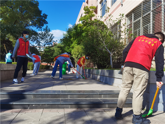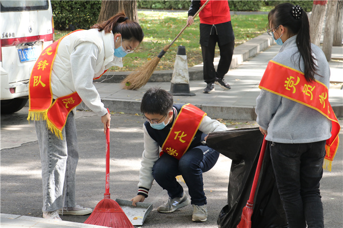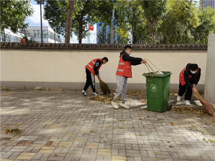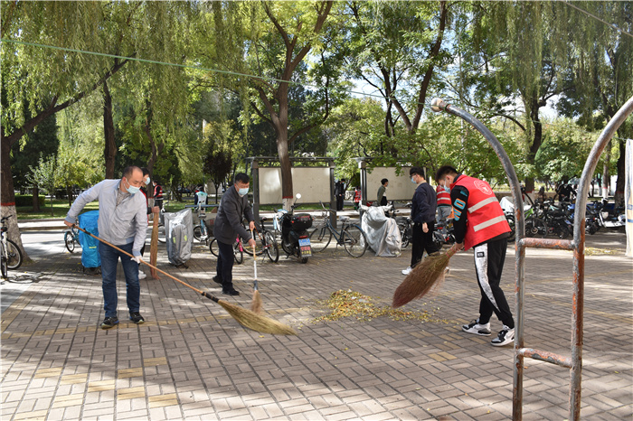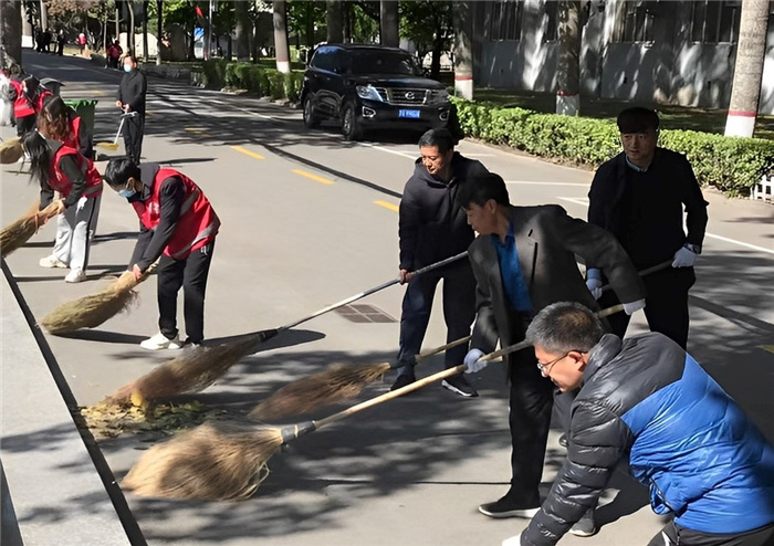 物业服务中心负责人进行了具体工作安排。师生分工合作、相互配合,对校园地面、两侧绿化带、教学办公区、宿舍区等进行了卫生清扫。刘润祥身体力行,带领其中一队师生,对虎峪校区梅花楼前道路、宿舍区道路等处进行了细心清理。劳动过程中,他教导同学们一定要“弯下腰、使出劲、流出汗”,认真清扫校园的每个角落,切实感受劳动的辛苦和光荣。