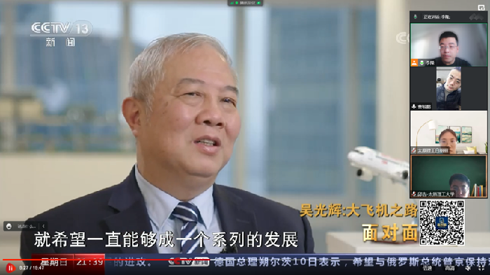 12月11日,央视面对面专访大飞机C919总设计师、我院特聘教授吴光辉院士。学院组织师生集中收看并进行学习讨论。