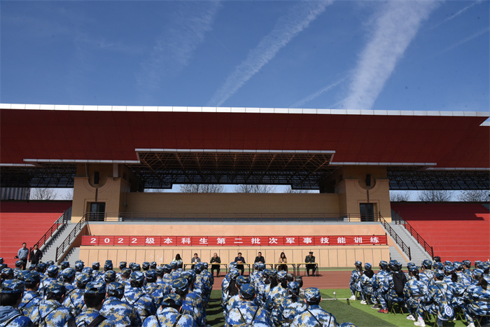 为增强大学生国防意识,深入学习贯彻习近平总书记“深化全民国防教育”的重要指示,4月8日,为期4天的2022级本科生第二批次军事技能训练在明向校区东田径场拉开序幕。本次军训营下设6个军训连,由13名退役学生担任本次训练的教官,共计477名学生参训。