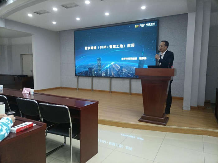 程静亮就信息时代下,BIM+智慧建造的强大魅力做了详细阐释。他指出,当今信息技术的快速发展和广泛应用已经形成数字世界与物理世界的交错融合,正在引起生产方式、生活方式、思维方式和治理方式的深刻革命,建筑业作为粗放型的传统支柱产业亟待转型升级。融合BIM、IoT、AI技术的智慧建造,将推动建筑业绿色化、工业化和数字化发展,助力实现智慧城市、数字社会的“新基建蓝图”。他分享了太平洋建设集团实施的精品案例,展示了BIM技术在设计优化、施工管理、智慧运维等方面的有效运用。BIM发展的核心要素是“人”。建筑业数字化、城市更新、智慧城市是巨大的机遇和挑战,鼓励在座的土木工程专业学子们要勇于担当,珍惜在校光阴,在掌握专业基础知识的基础上,积极主动学习BIM技术,共建祖国“智慧”明天。