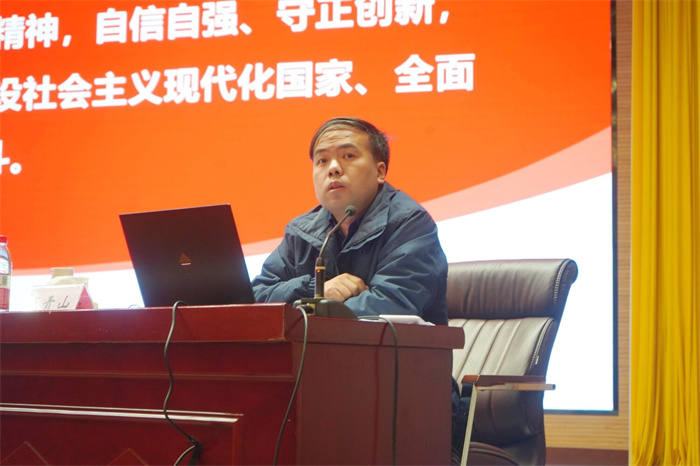 9日上午,马克思主义学院王青山副教授带来了《深入学习贯彻党的二十大精神》课程,从整体把握、全面系统和突出重点、抓住关键两个方面讲解党的二十大相关内容,从成就经验、指导思想、使命任务,国家发展、国家安全和从严治党六个方面解析党的二十大报告15个部分,强调学习党的二十大精神要做到“五个牢牢把握”,引导大家培养历史责任感,争做有理想、敢担当、能吃苦、肯奋斗的新时代好青年。