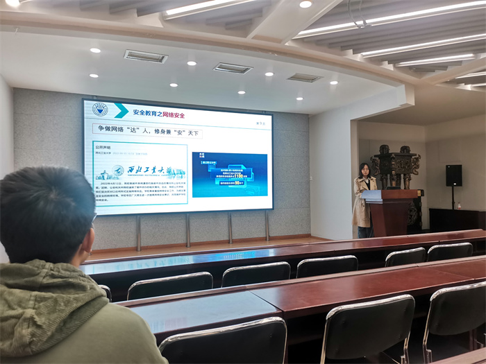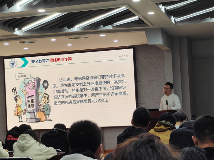会上,辅导员老师们详细介绍了常见的电信网络诈骗类型和应对措施,提醒学生要时刻保持警惕,保护个人信息安全。并从心理安全、交通安全、消防安全、用电安全、食品卫生安全、隐私安全、生命健康安全、财产安全等方面讲述了校园安全问题,让同学们认识到在日常生活中防患于未然的重要性和生命的脆弱与可贵。通过观看视频、交流研讨、典型发言等形式,与会人员纷纷表态要提升网络安全意识,敲响校园安全警钟,做知法、懂法、守法的新时代青年大学生。