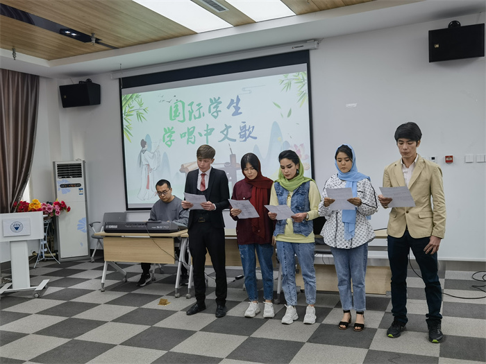 “蒹葭苍苍,白露为霜”“有朋自远方来,不亦乐乎”伴随着宛转悠扬的古琴声,国际学生齐声诵读《诗经》《论语》《春夜喜雨》,体会“以和为贵”、“天下大同”的儒家思想。在“学唱中文歌”环节,五名阿富汗学生集体演唱由陕北民歌《崖畔上开花》改编的《知道不知道》,学习歌词中的“比兴”手法,借由美丽的自然风光,道出对美好生活的向往之情。在“我眼中的中国”演讲活动中,国际学生纷纷与大家分享了自己与中国的渊源和来华求学的心路历程,阐述了对中国在基建、科技等领域取得的成就和对“制度优势”“中国式现代化”的理解。