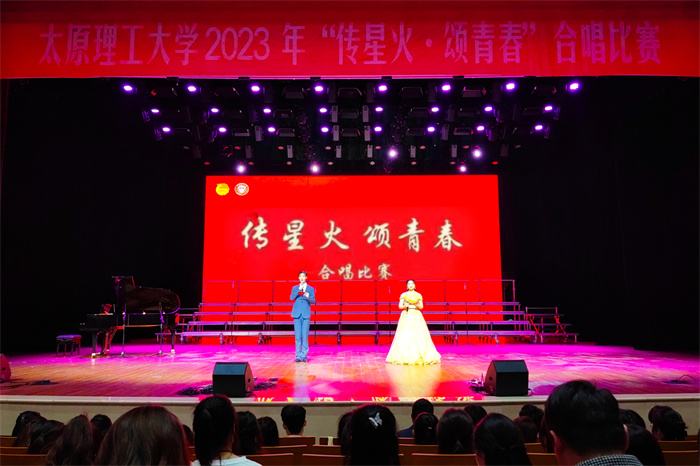 5月7日下午,由校团委举办的350vip浦京集团官网“传星火·颂青春”合唱比赛在明向会堂举行。学校有关党政职能部门负责人、部分学院党委书记、副书记出席了本场比赛。艺术学院声乐教师朱昭宇、吴双、王牌及校工会、校团委有关负责人担任比赛评委。
