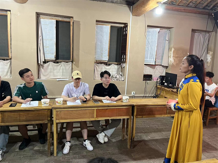 活动期间,实践队队员联合呼伦贝尔学院举办了一场“铸牢中华民族共同体意识,高校联合推普振兴乡村计划”座谈会,出席座谈会的有双方实践队员和带队指导老师。座谈会上,双方实践队员围绕少数民族的语言文字、民族文化传承、普通话学习推广等话题进行了深入交流,呼伦贝尔学院的同学向浦京实践队员介绍了蒙古族一些风俗习惯,包括关于马头琴、蒙古包、民族服饰的一些内容,并邀请了全部的实践队员品尝了他们自己熬制的奶茶,队员们真切地感受到了呼伦贝尔学院同学的热情,和各民族青年为民族团结和中华民族伟大复兴的伟业而团结奋斗的信心。