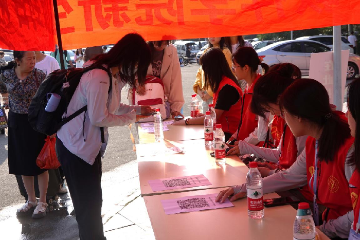 热情!由党员先锋队、团学机构骨干、新生志愿者等组成的迎新志愿者统一标识、亮明身份,经过严格的培训后正式上岗。一声声“同学好”“跟我来”,一张张微笑的面容,一次次贴心暖心用心的服务与帮助为新生及新生家长带来无微不至关爱,给小萌新带来最热情的软件学院“第一印象”。