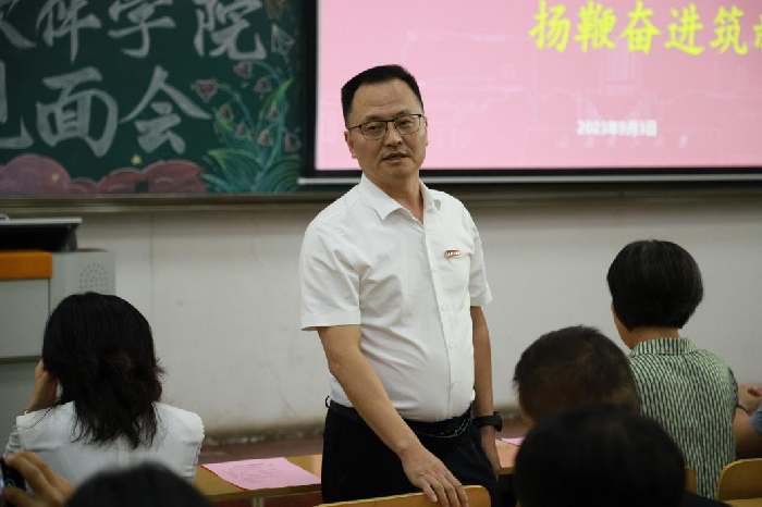 放心!9月3日下午,软件学院召开2023级新生家长见面会。软件学院党委书记李栩、院长赵涓涓、党委副书记郭飞、副院长冯秀芳、曹锐以及党政其他负责人全体新生辅导员出席见面会。300余名新生家长携着期许、带着信任来到会场。见面会向家长们的到来表示诚挚感谢,就学院基本情况、育人理念、培养模式向家长作了简要介绍,对家校合作协同育人向家长们提出建议。