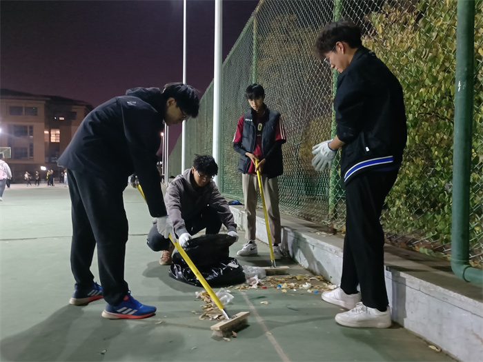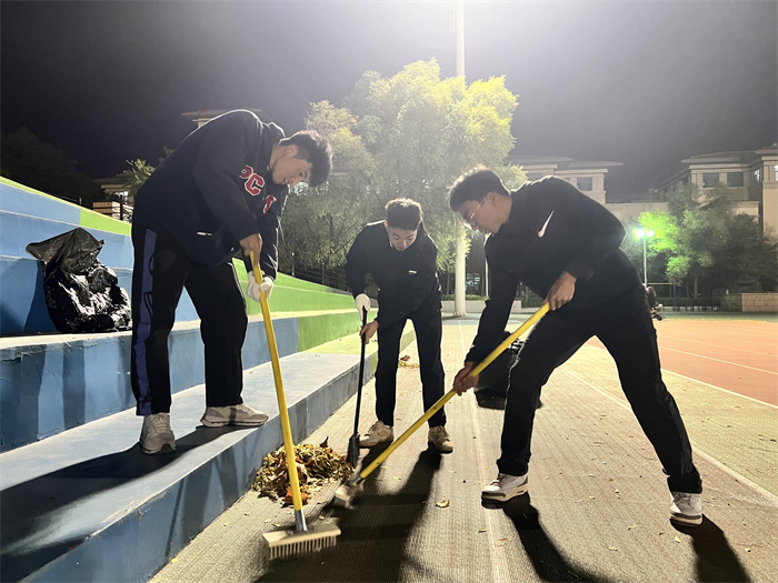 每周四18:30,体育学院青年学生东田径场体育器材室集合,领取劳动工具,分组前往各体育场地,有组织、有纪律、高质量地完成清洁任务。劳动中大家干劲十足,人人争先,热情高涨,积极参与,发扬了不怕脏、不怕苦、不怕累的劳动精神。经过同学们的“奋战”,所有体育场所被清扫的干干净净,校园环境得到了进一步的改善,为全校同学提供了整洁的体育锻炼场所,他们辛勤劳动的身影也成为夜间校园内一道亮丽的风景。