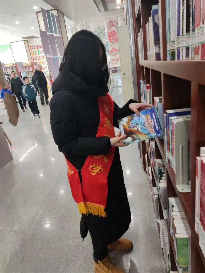 整理图书便读者,维持秩序守文明。志愿者们在馆内流通部、少儿区整理书籍同时,还会维持馆内秩序,引导服务读者,解决读者的问题。