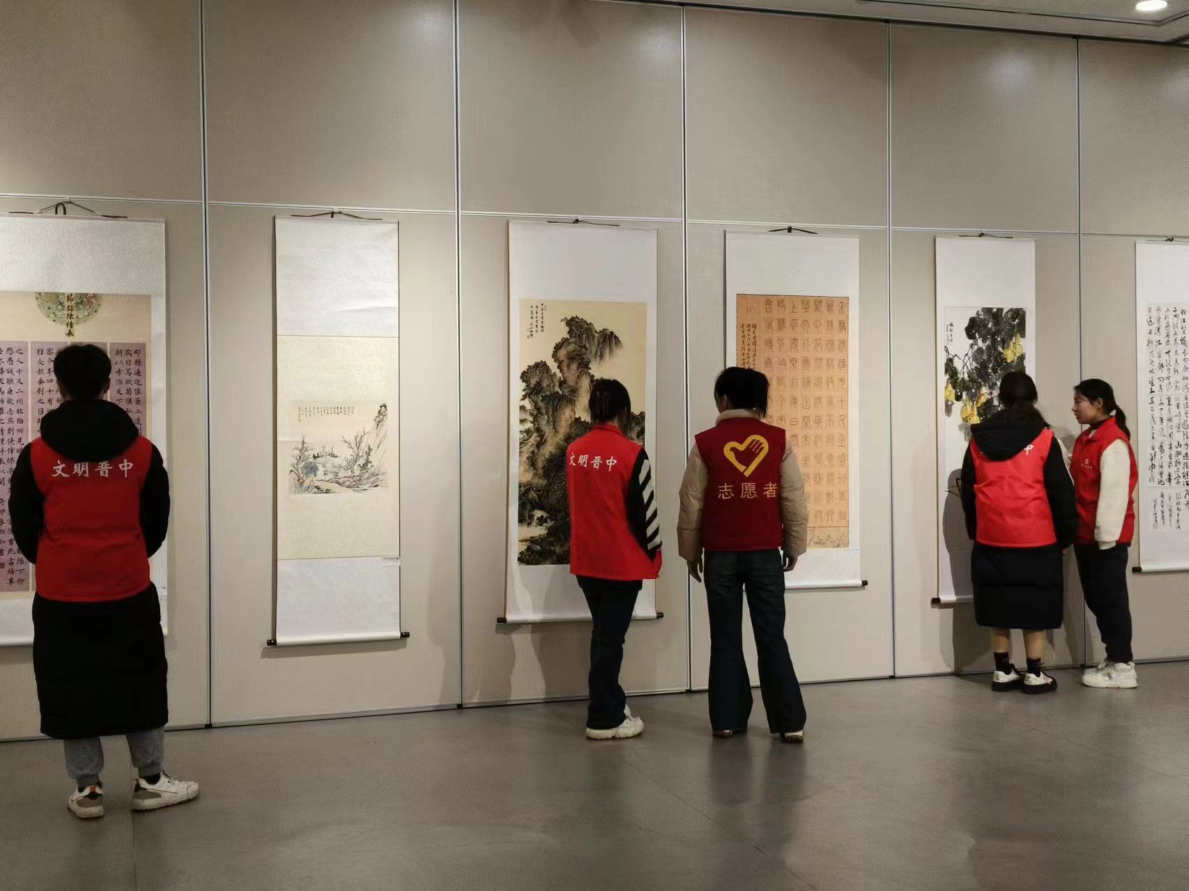 翰墨飘香润心田,丹青溢彩贺华章。基础工作做完之后,志愿者同学们自发参观了“巾帼建功新时代书画展”,领略到铿锵玫瑰的芳华力量,了解独特、细腻、唯美的艺术世界